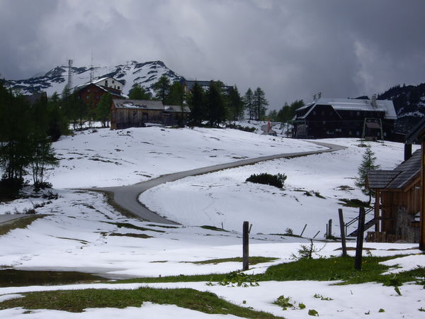 Bei der Auffahrt zur Tauplitzalm liegt schon weit unterhalb des Schigebiets eine Neuschneedecke