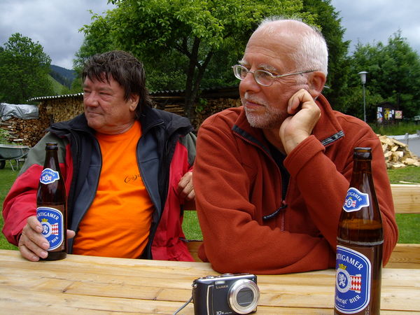 Roland notierte sich: "Jause in Wallersdorf in neuer Jausenstation, gemeinsam mit vielen Bierdimpfeln und vielen guten, aber unpräzisen Ratschlägen. Großer Brotzeitteller mit Schnaps und einem Liter Bier."