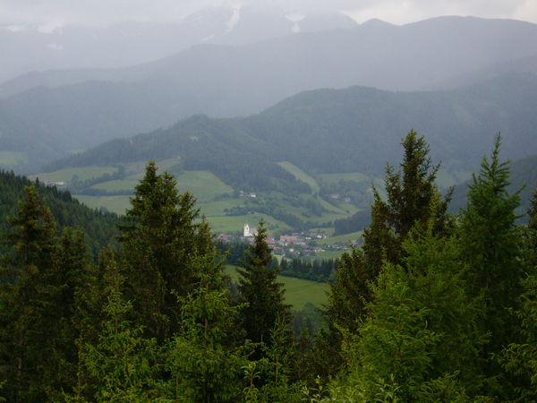 St. Oswald, unser Tagesziel ist schon zu erkennen, allerdings regnet es dort stark, während wir den ganzen Tag trockenes Wetter hatten.