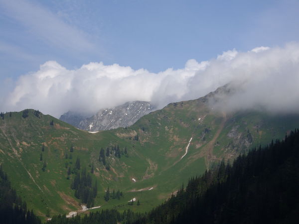 Durch unsere Entscheidung haben wir viel Zeit gewonnen. So können wir uns eine längere Rast im warmen Kessel gönnen. Der ursprünglich geplante Weg liegt dagegen in den Wolken.