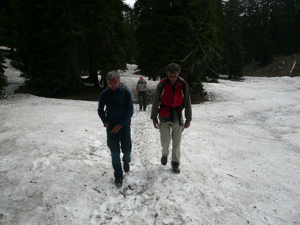 Der Schnee ist eigentlich gut zu überqueren. Allerdings befinden wir uns auf dem einzigen Zufahrtsweg zur Häuslalm und wir können keine Fahrspuren entdecken.