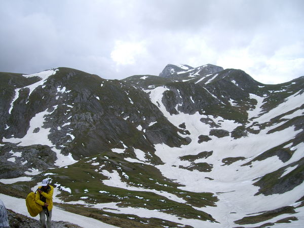 Blick aus dem Ochsenreichkar zurück zum Hochschwabgipfel