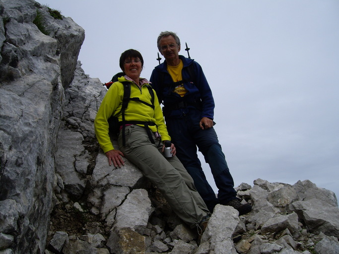 Der Schreck währte aber nur kurz und bereits um 9 Uhr machten wir uns bei ganz brauchbarem Wetter wieder auf den Weg zurück zum Rauchfang. War Margit anfangs noch skeptisch, ob ihr der regennasse Weg durch die Schrofen gefallen würde machten wir bald gut Fortschritte.