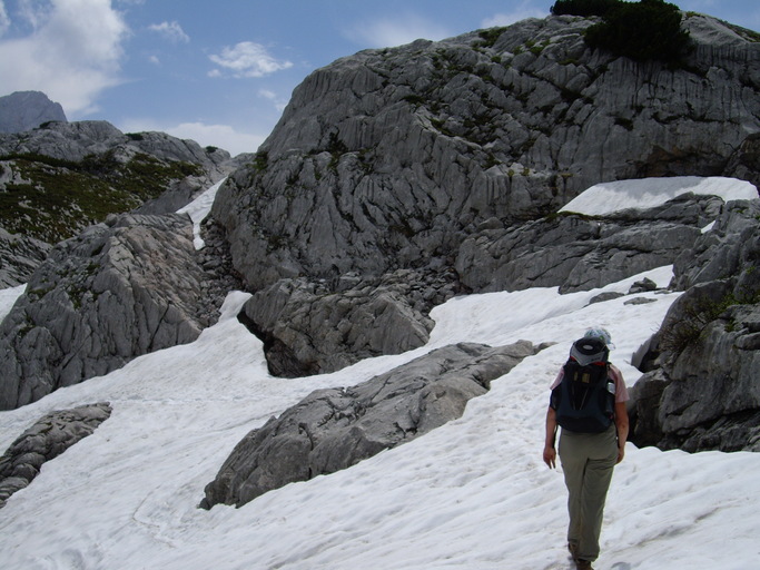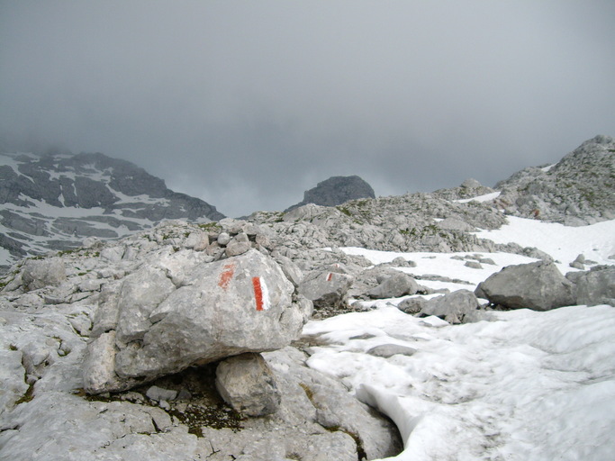 Dank der Verlegung des Weges in die versicherten Schrofen können die einstmals im Frühsommer sehr gefährlichen Schneefelder meist bequem umgangen werden.